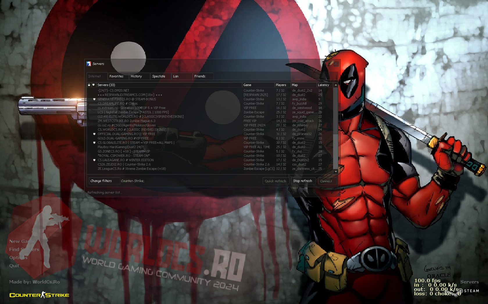 Thanks to the protection installed by us, you will not have problems with autoconnect, cmds, trackerUI or others that spoil or affect the good functionality of the game client, so nothing will spoil this wonderful version below. Counter-Strike 1.6 DeadPool is based on the original DP player model, who as we all know is a very good and arrogant superhero. If you want to have a nice customer, this one is to the liking of every member.